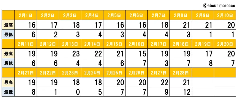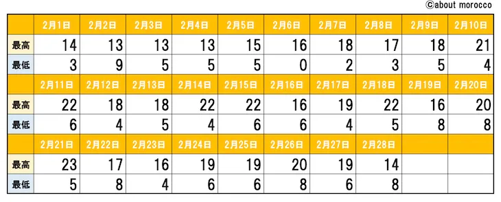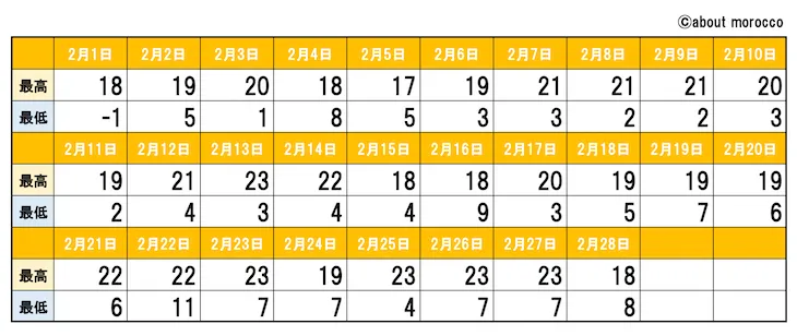 2月は1月に引き続きモロッコで最も寒い月ですが、後半になるともうすぐ春の暖かさがやってくるかな?という日が出てきます。